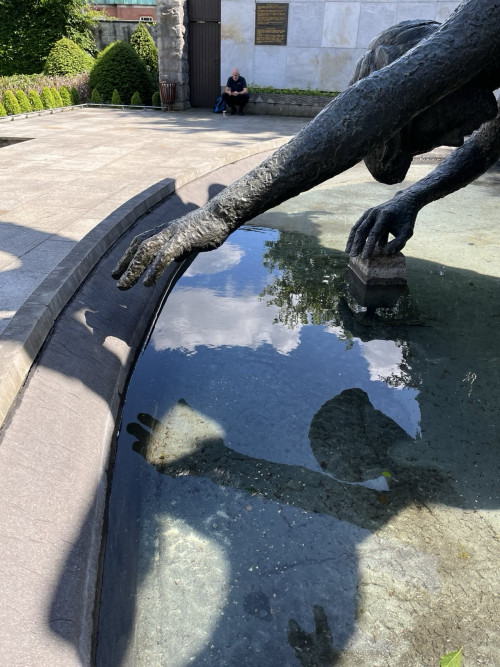 Image: Hand and water from Oisín Kelly’s sculpture in the Garden of Remembrance after the closing ritual of a workshop Bu Shea led, Fire Station Artist Studios, Dublin, 2025.