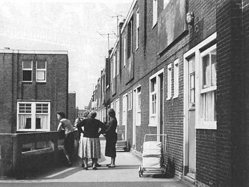 Residents of the Justus van Effen Complex conversing circa 1922. Photo: Stads Archief Rotterdam.